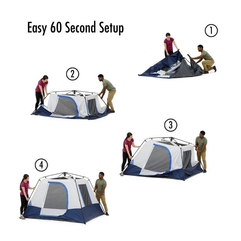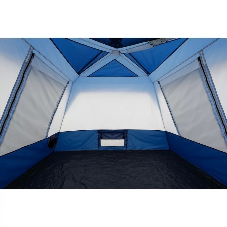 Start your next outdoor adventure with the 4-Person Instant Cabin Tent with LED Lighting Center. This spacious cabin-style tent requires no assembly because the poles are pre-attached to the tent, so all you need to do is unpack, unfold and unfold. The tent features three large mesh windows and an adjustable air conditioning vent for improved air circulation throughout the tent. This tent comfortably accommodates up to 4 campers on a queen-size air bed or sleeping bags on the floor. An included mesh storage pocket and cord access keep you organized and connected. Ambient LED lighting hubs provide stunning light throughout the tent and can be adjusted with low, medium and high settings. This tent features anti-snag door zippers, invisible mesh and a 1200mm waterproof coating.