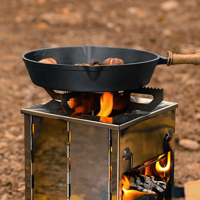 1.Wide Compatibility with Multiple Fuels: Leaves, branches, sawdust, dead grass, wood, solid alcohol, coal, etc. You can make full use of different fuels to make a meal and you don't have to worry about finding fuel outdoors difficultly.